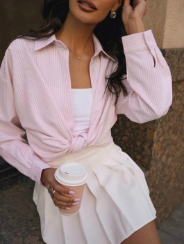 Легкая рубашка в полоску стильный выбор для весеннего сезона Изготовленная из натурального хлопка, она обеспечивает комфорт в любую погоду Оверсайз крой и удлиненный фасон подчеркивают актуальность модели и подходят для любого типа фигуры, включая большие размеры.
