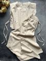 Топ с плечиками, по бокам на завязках.