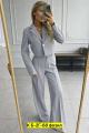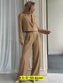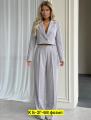 Пиджак имеет свободный крой, брюки палаццо добавят свободу и комфорт.