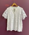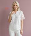 Удлинeнная женская блузка свободного кроя из хлопка с эластичностью и нежным кружевом Лeгкая, дышащая, с коротким рукавом и круглым вырезом - идеально для офиса, прогулок и праздничных мероприятий Белый цвет освежает образ и легко сочетается с любым гардеробом Отличный вариант для размеров plus size.