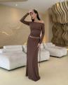 Двойка лонгслив с открытыми плечами и юбка макси на запах.