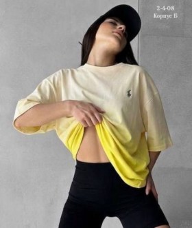 Женская футболка polo с градиентным принтом выполнена из 100 хлопка Футболка с нежным эффектом омбре идеальна для создания стильных и расслабленных образов Плавный переход от одного к другому цвету добавляет свежести и легкости.