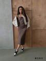 Модель демонстрирует платье, маркировка 42.