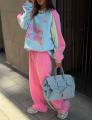 Уютный костюм-двойка с эффектным принтом и контрастными рукавами Свитшот свободной посадки джоггеры идеален на каждый день.