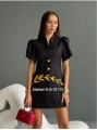 Стильный платье-пиджак с золотыми пуговицами.