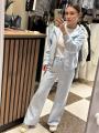 Стильный костюм: кофта на молнии с кармашками и капюшоном трендовые брюки палаццо.