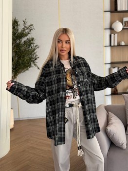 Рубашка maison margiela premium качества, выполнена в oversize-стиль, прямой крой, мягкий не мнущийся дышащий хлопок, принт клетка, нагрудной рабочий карман.