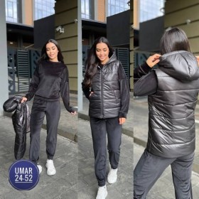 Получили новинки уютный спортивный костюм тройка из мягкого велюра с жилеткой удобная посадка жилет на молнии прямого кроя на подкладке.