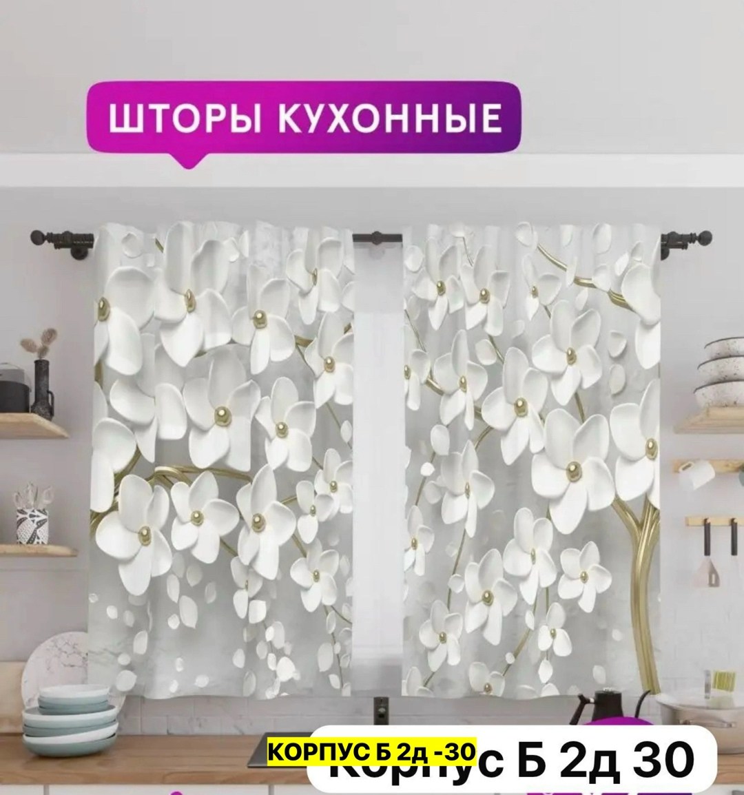 Шторы 3д кухня ткань габардин