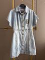 Джинсовое платье schiaparelli premium качества, приталенный мини-силуэт с акцентом на талии за счет вертикальных швов, застегиваеться по всей длине, классический отложной воротник и короткие свободные рукава.