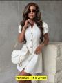 Стильный платье-пиджак с золотыми пуговицами.