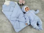 Конверт на выписку из муслина 5в1 в комплекте: одеяло на синтепоне (100г), бант на резинке, комбинезон швы наружу с царапками на молнии размер 56,подушка ортопедические, чепчик на завязках.