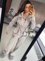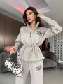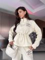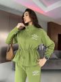 Зип худи на кулиске по талии и удобные свободные брюки!.