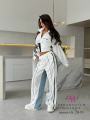 Трендовые широкие брюки с вставками из денима.