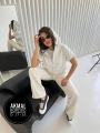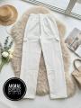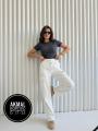 Джинсовые белые штаны карго на спортивном поясе с фиксатором внизу штанин.