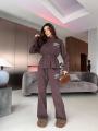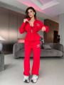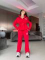Зип худи на кулиске по талии и удобные свободные брюки!.