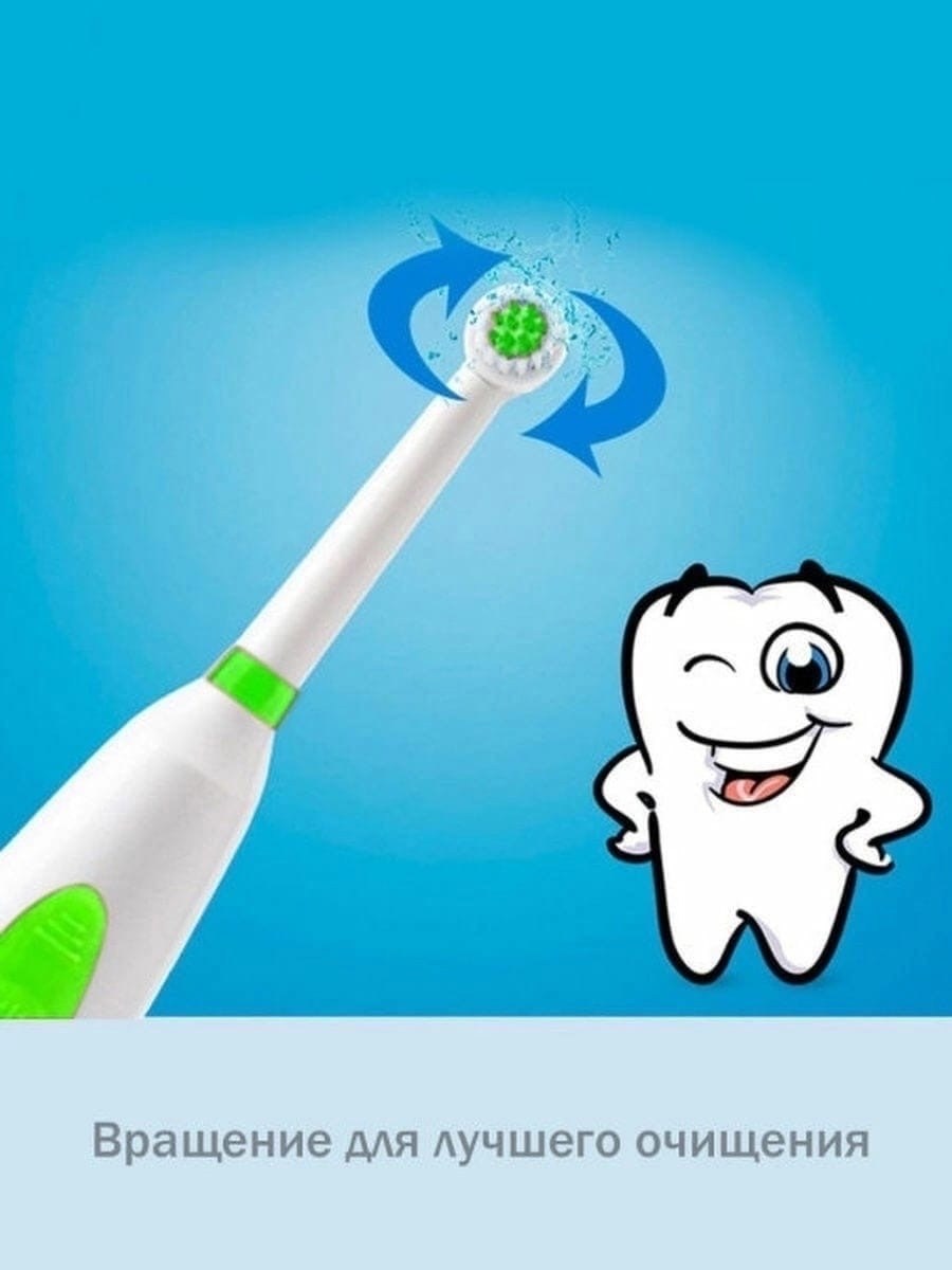 Электрическая зубная щетка это щетка, работа которой осуществляется посредством функционирования встроенного в нее небольшого электрического мотора Скорость вибрации щетинок является довольно высокой В комплекте идт сразу три насадки 2 батарейки Она поможет деликатно удалить бактериальный налет и проникнет в самые удаленные уголки во рту.