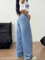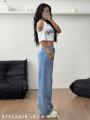 Джинсы багги женские голубые - это идеальный выбор для современных девушек, ценящих комфорт и стиль Широкий крой джинсов багги дарит свободу движений и создает расслабленный, современный образ.