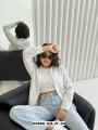 Белая майка и рубашка жатка с цветочками и стразами.