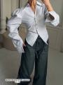 Приталенная рубашка с акцентным воротником и объмными рукавами эффектно и женственно.