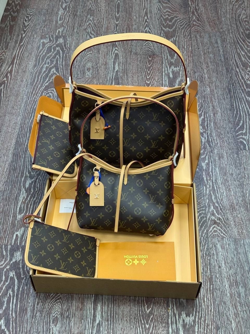 В комплект фирменный и пыльник двойной коробка.