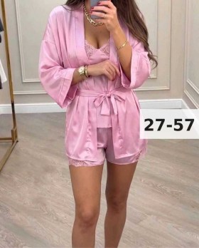 Новое поступлениецена 500 рублейпояс в комплектеразмеры 46/48/50/52/54/56качество luxпижама тройкаткань шолк гипюр.