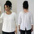 Женская блузка с кружевной отделкой.