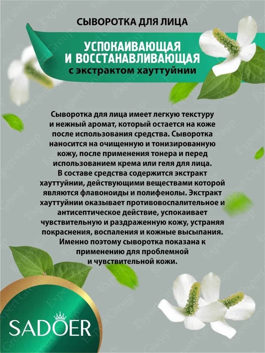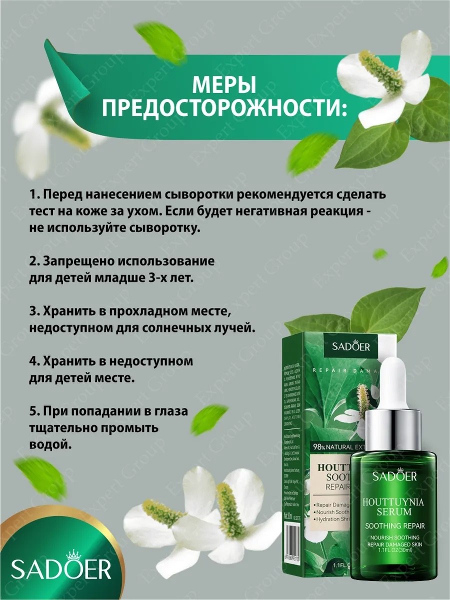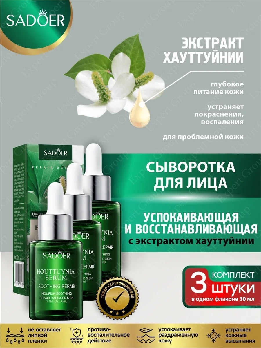Успокаивающая и восстанавливающая сыворотка для лица sadoer с хауттуйнией 30 мл Х 3 шт.