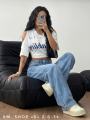 Джинсы багги женские голубые - это идеальный выбор для современных девушек, ценящих комфорт и стиль Широкий крой джинсов багги дарит свободу движений и создает расслабленный, современный образ.