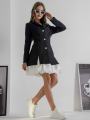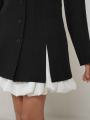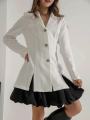 Элегантное платье в современном стиле с акцентом на контрасте фактур и линий.