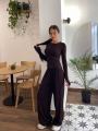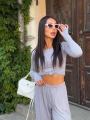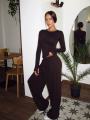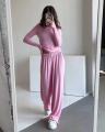 Трендовый костюм оверсайз из мягкой натуральной тканьи: лонгслив с вырезами на пальцах.