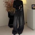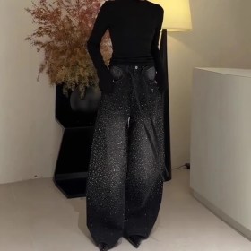 Широкие джинсовые брюки с камнями
