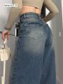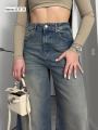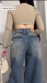 Джинсы прямого кроя с высокой посадкой база, которая всегда работает Плотный деним красиво держит форму, удлиняет силуэт и легко сочетается как с кроп-топами, так и с объемными свитерами Must-have в гардеробе.