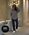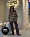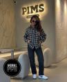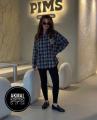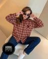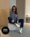 Женская клетчатая рубашка с эмблемой на кармане.