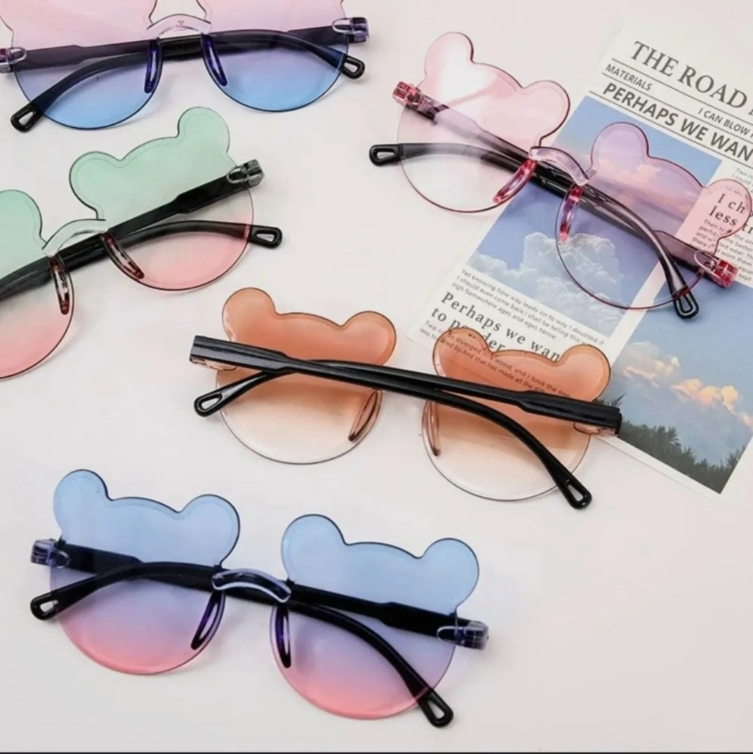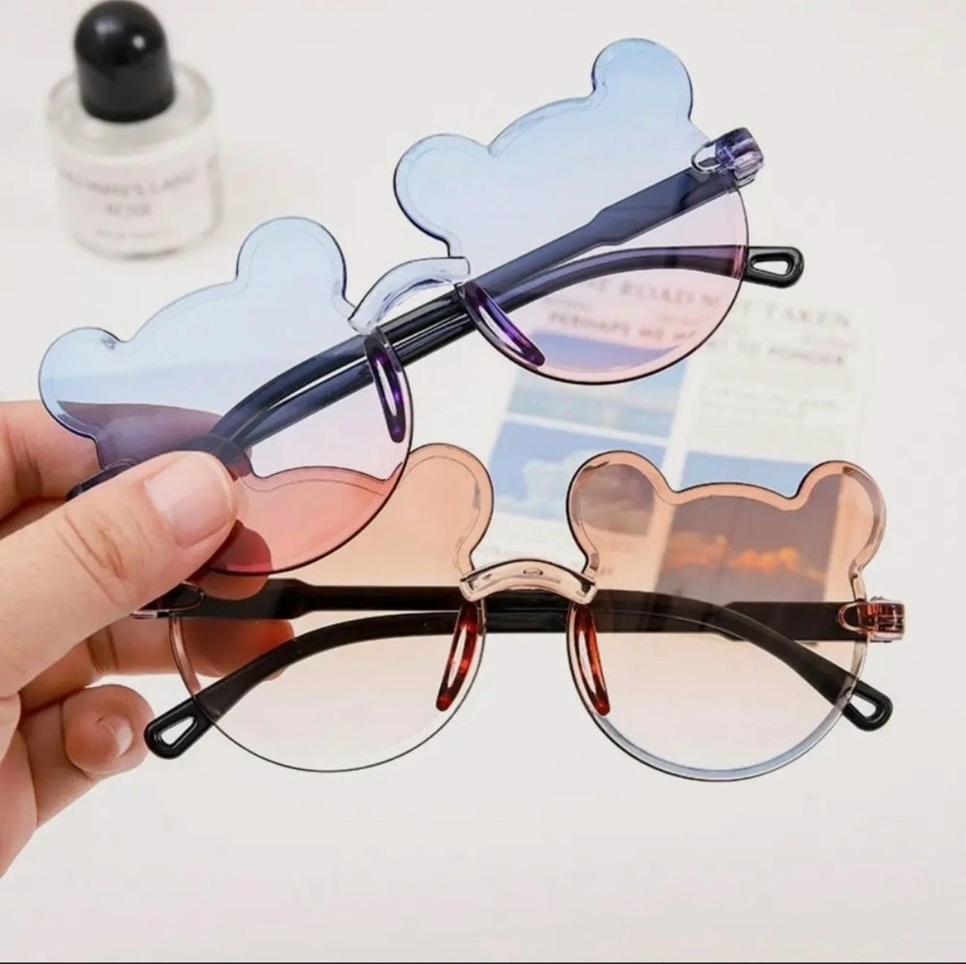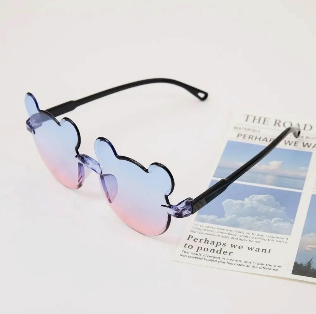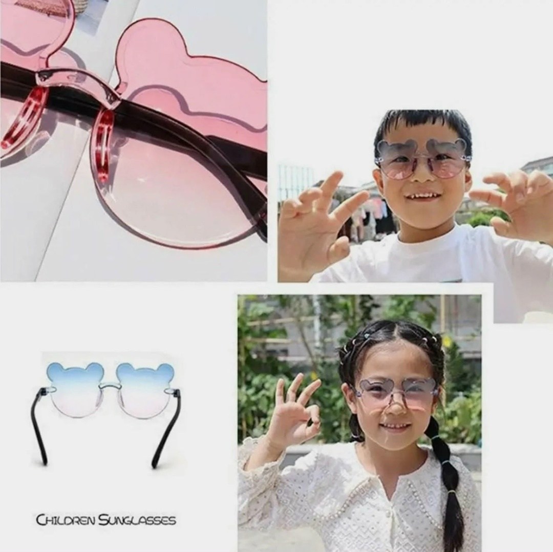 Вечерние uv375, детские солнцезащитные очки без оправы, очки с градиентом маленький медвежонок для мальчиков и девочек.