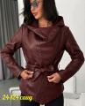 Стильная женская куртка из экокожи с капюшоном.