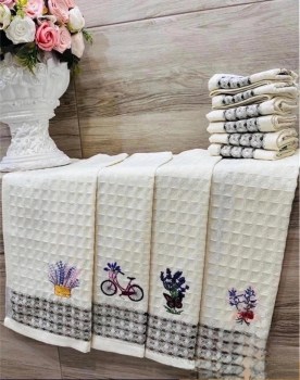 Полотенца вафелные кухонные хорошее качество с красивой вышивкой влагу впитывает хорошо.