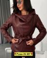 Стильная женская куртка из экокожи с капюшоном.