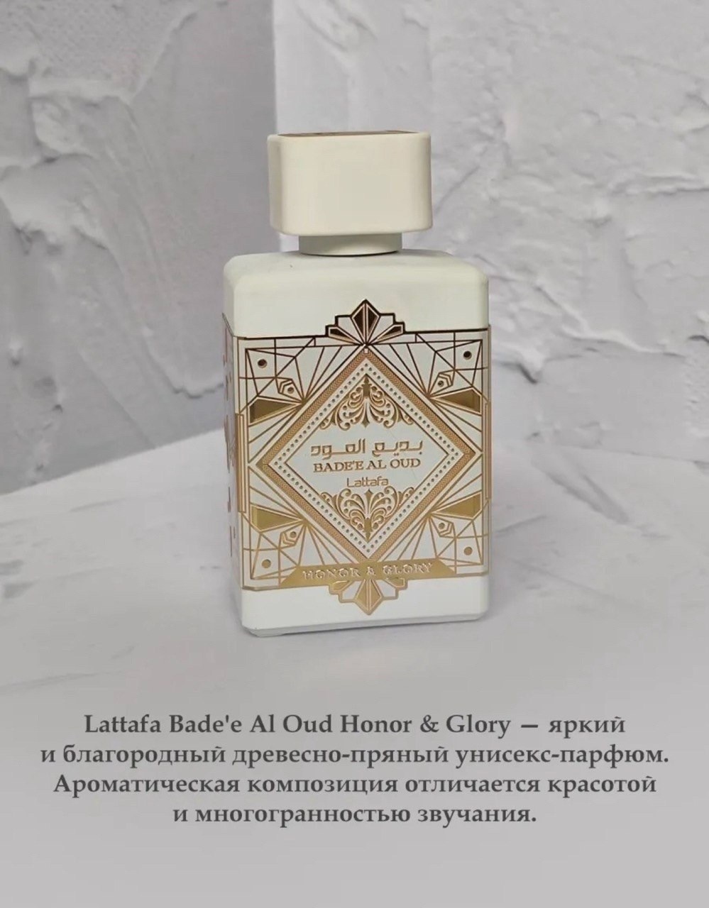 Содержит в составе этиловый спирт Парфюмированная вода производства оаэ (арабские эмираты) Дизайн коробки (упаковки) и флакона стильный и эффектный.