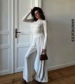 Широкие брюки палаццо визуально удлиняют ноги, а приталенный лонгслив подчеркивает фигуру Идеально для прогулок и отдыха!.