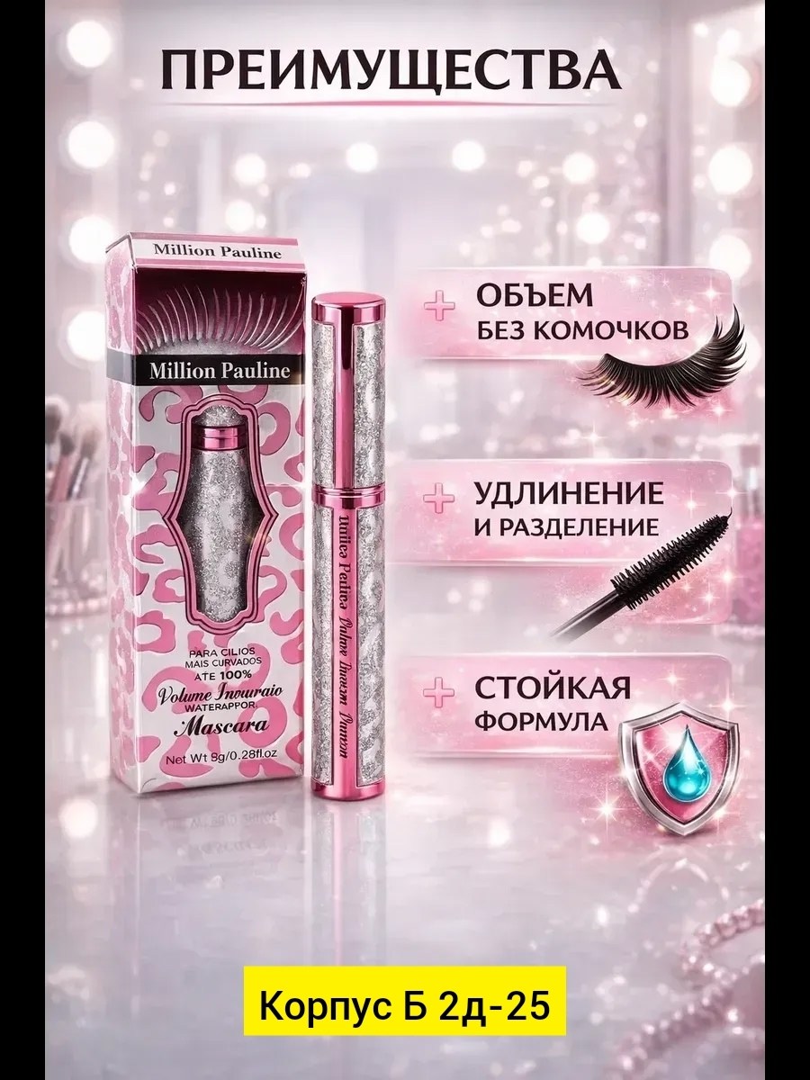 Тушь для ресниц черная водостойкая объем и удлинение.