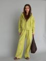 Внизу брюк кулиска, можно носить как палаццо, а можно затянуть и носить как джоггеры.