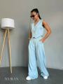 Эффектный костюм двойка с укороченным жилетом и широкими брюками для стильных и уверенных образов.