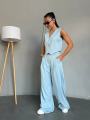 Эффектный костюм двойка с укороченным жилетом и широкими брюками для стильных и уверенных образов.