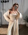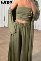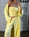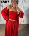 Эффектная тройка с топом бандо, брюками и легкой накидкой Идеальна для стильных летних образов и отдыха.