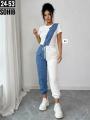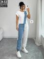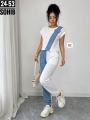 Трендовый костюм с оригинальным дизайном: сочетание лгкой тканьи и джинса создат эффектный и современный look аккуратный пошив, приятный к телу материал идеально на каждый день.