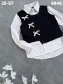 Жилет изготовлен из трикотажа, рубашка - из хлопка.