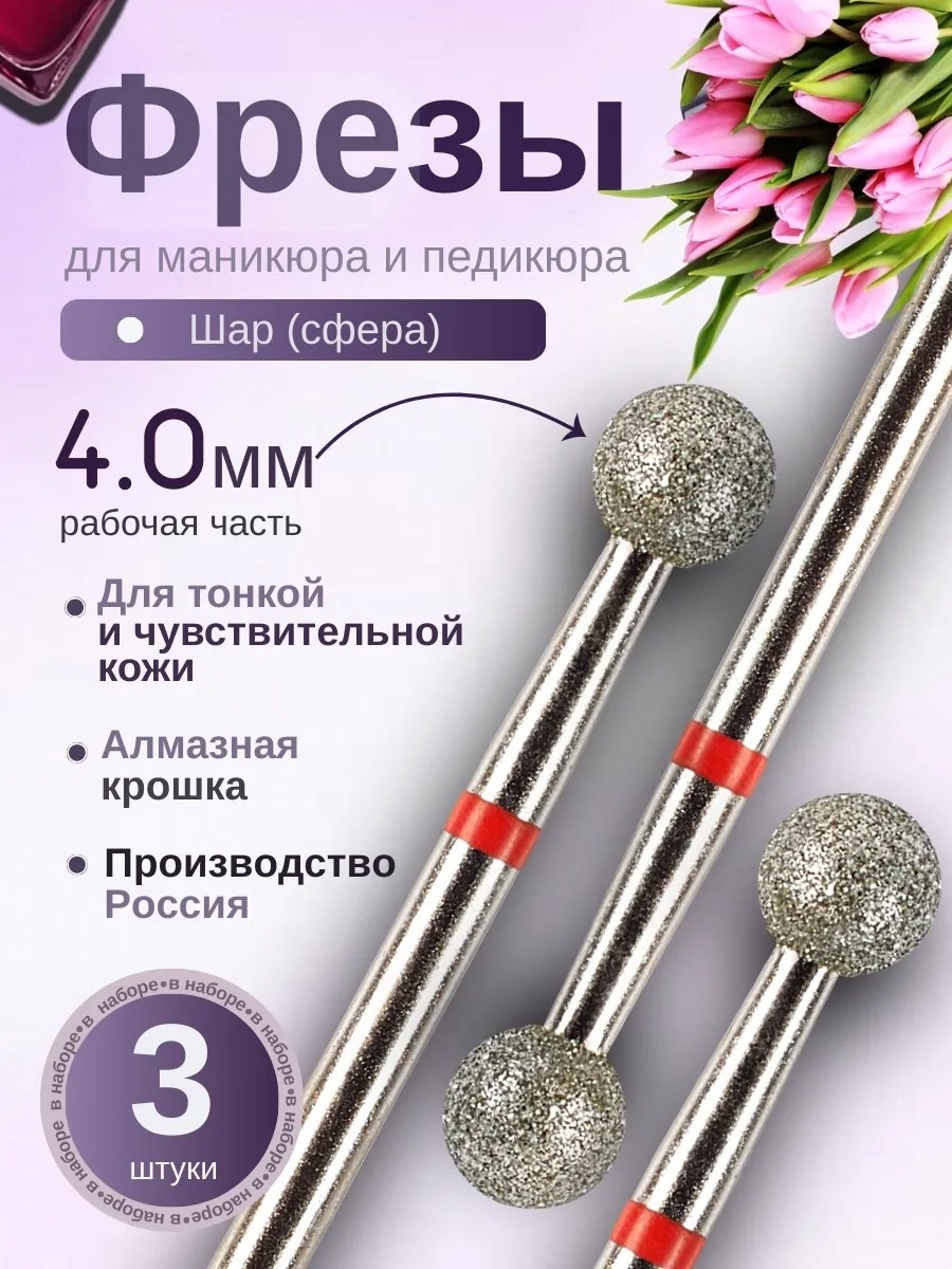 Главный инструмент в работе мастера маникюра и подолога фреза Благодаря данному сферическому инструменту обрабатывается до гладкости кожа, создаются формы ногтей для покрытия лаком и проработки дизайна Наш бренд обеспечит бережный уход, комфортное использование и здоровые ногти Насадка сфера с красной насечкой с алмазным напылением придаст коже мягкость и красоту, а ногтевой пластине аккуратный внешний вид Данная форма бора служит для безопасной обработки боковых валиков и кутикулы, коррекции, снятия старого гель лака В аппаратном педикюре фреза выполняет шлифовку и полировку пяточек, избавит от трещин и мозолей Алмаз натуральный абразивный материал, который обладает эффектом долговечности и прочности, у него отличная режущая способность, что немало важно в работе Крошка такого металла, покрывающая поверхность залог качества Благодаря кристаллам вы получаете тонкое снятие и мягкую обработку Стальной расходник подходит для профессионального и домашнего применения; для натуральных и нарощенных ногтей.