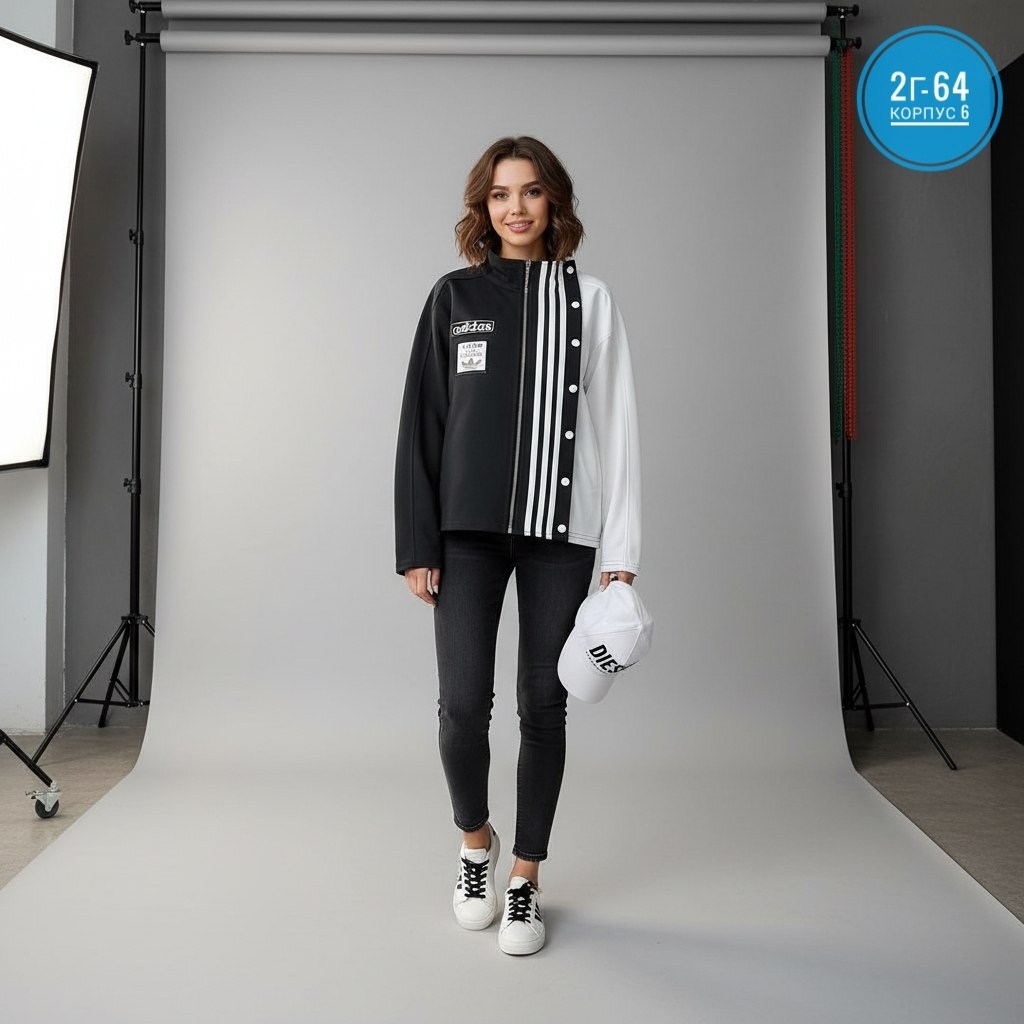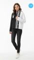 Куртка выполнена в черно-белой цветовой гамме с контрастными полосами на передней части, что придает ей спор.