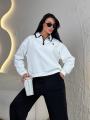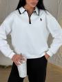 Стильный свитшот-поло на молнии идеальный баланс между спортивной расслабленностью и аккуратной классикой Плотный, мягкий трикотаж держит форму, воротник с контрастной окантовкой добавляет характер, а свободная посадка дарит комфорт на каждый день Легко сочетается с джинсами, брюками и спортивными образами, создавая аккуратный и дорогой вид без усилий.